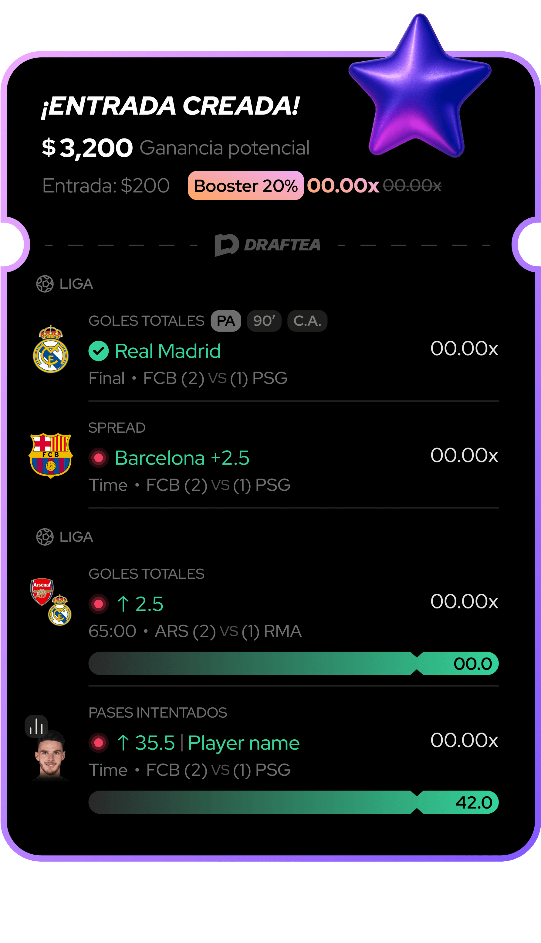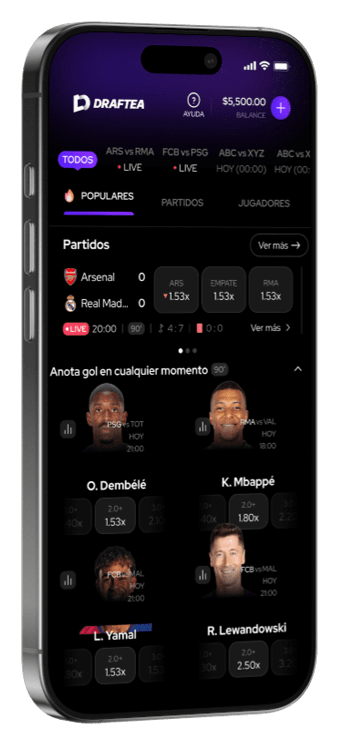Jugar en Draftea es tan fácil como elegir tu apuesta favorita, depositar en segundos y disfrutar mientras